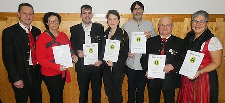 Mit 1x25 Jahre, 3x40 Jahre, 2x50 Jahre und 2x70 Jahre konnten einige Mitglieder für ihre langjährige Mitgliedschaft geehrt werden und erhielten eine Urkunde mit Anstecknadel.